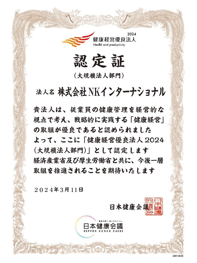 健康経営優良法人 大規模法人部門に認定をいただきました!